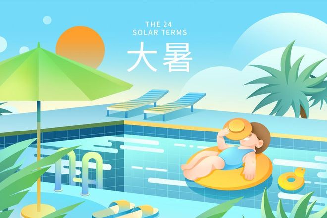 大暑,是二十四節(jié)氣中的第十二個(gè)節(jié)氣,也是夏季最后一個(gè)節(jié)氣。斗指未,太陽(yáng)黃經(jīng)為120°,于公歷7月22日-24日交節(jié)。"暑"是炎熱的意思,大暑,指炎熱之極。大暑相對(duì)小暑,更加炎熱,是一年中陽(yáng)光最猛烈、最炎熱的節(jié)氣,"濕熱交蒸"在此時(shí)到達(dá)頂點(diǎn)。大暑氣候特征:高溫酷熱、雷暴、臺(tái)風(fēng)頻繁。